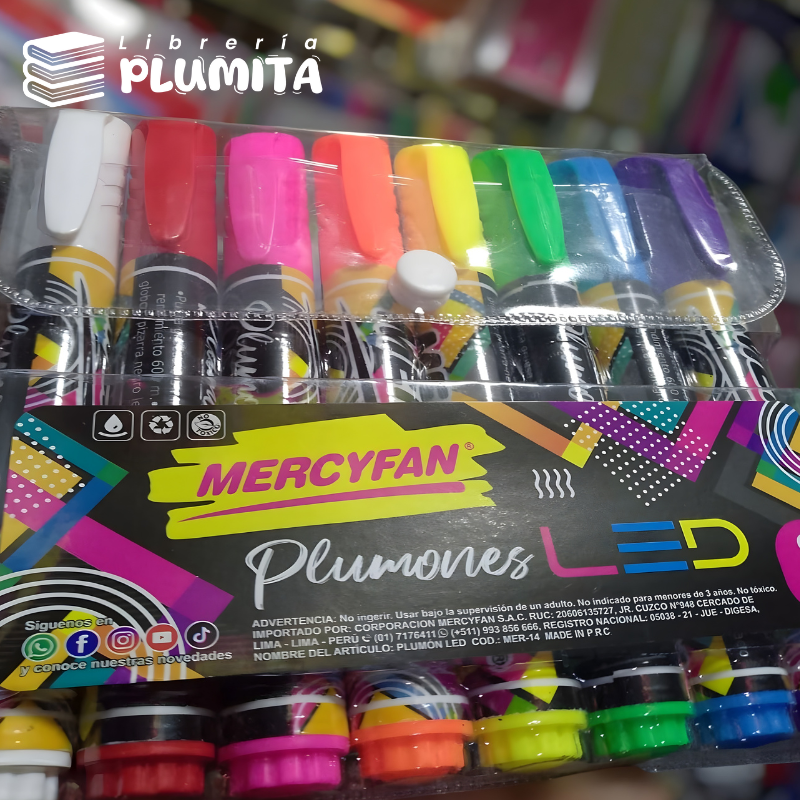 Dale color y creatividad a tus ideas con los Plumones LED Mercyfan, disponibles en Librería Plumita.